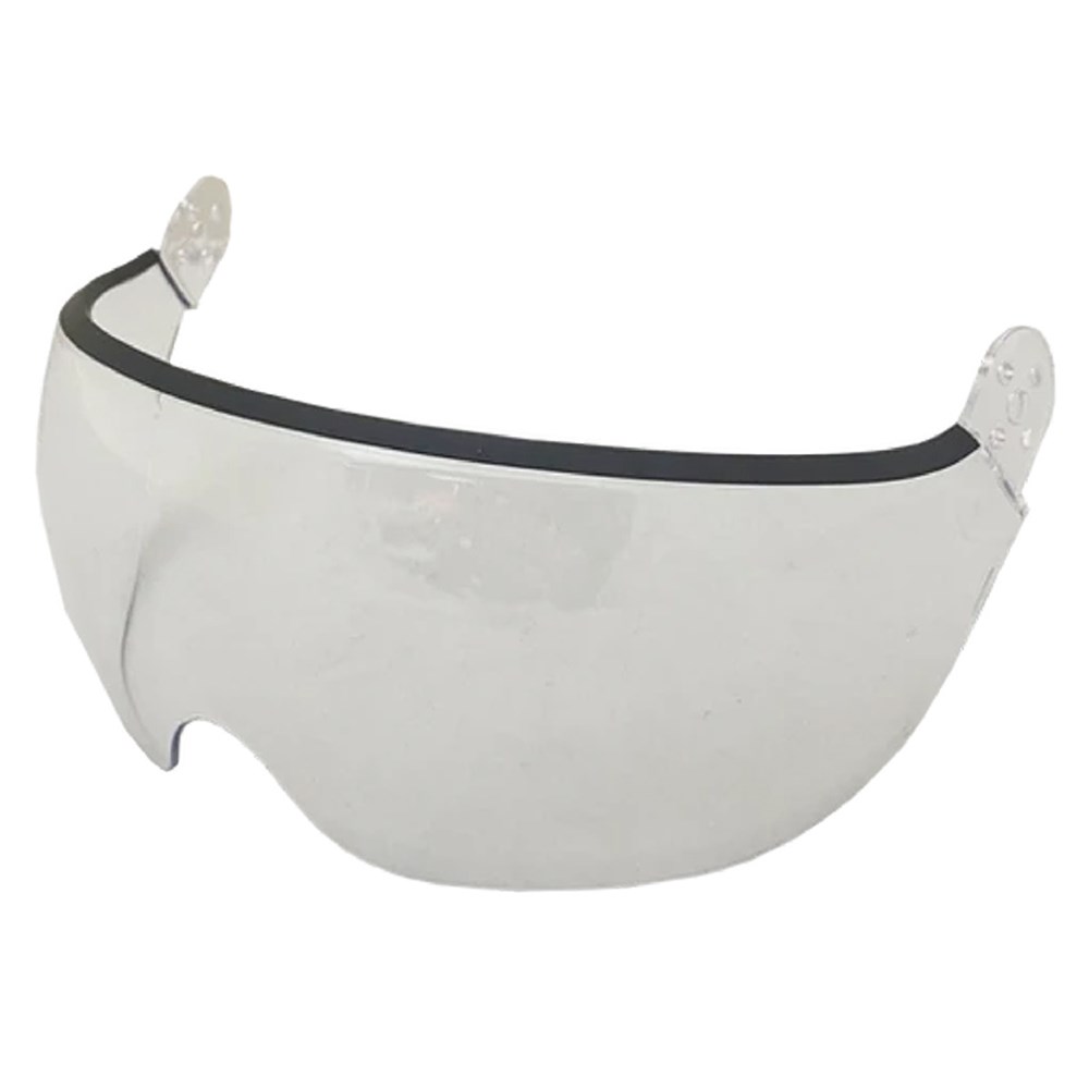 Screws to helmet and is able to be raised and lowered once attached.