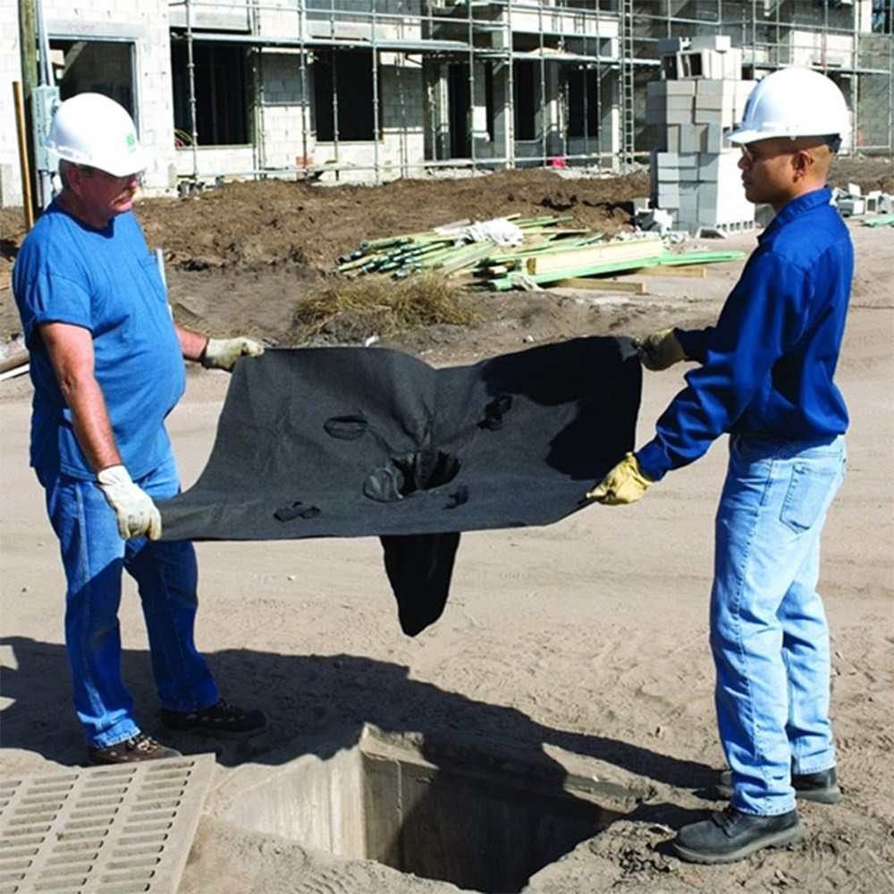 Sewn-in, lift-out straps make removal easy and prevent the Drain Guard from falling into the inlet.
