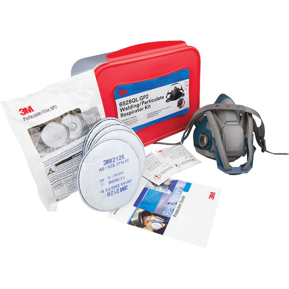 he kit includes the 3M™ Half Face Respirator 6500QL Series with Quick Latch Mechanism for ease in donning and doffing.