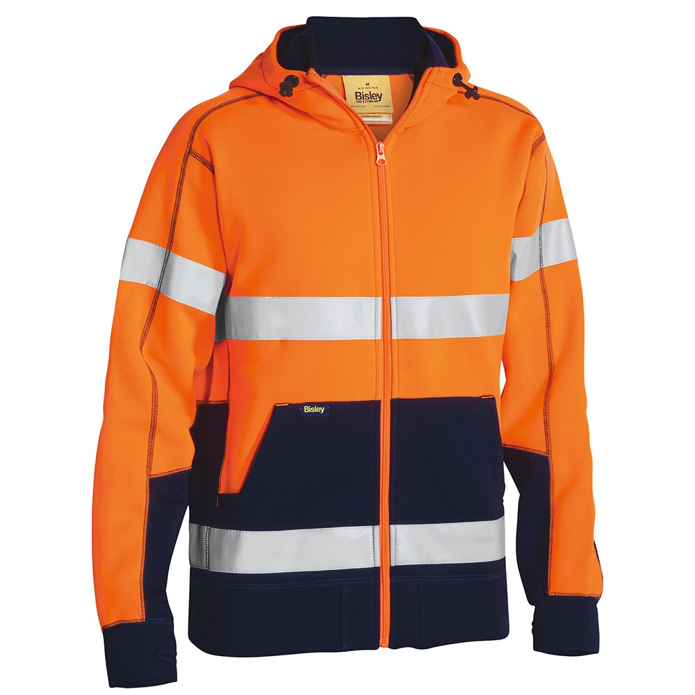 Bisley Hi-Vis Taped Fleece Hoodie - Orange/Navy
