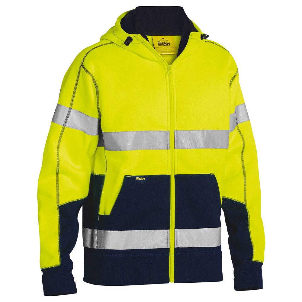 Bisley Hi-Vis Taped Fleece Hoodie - Yellow/Navy
