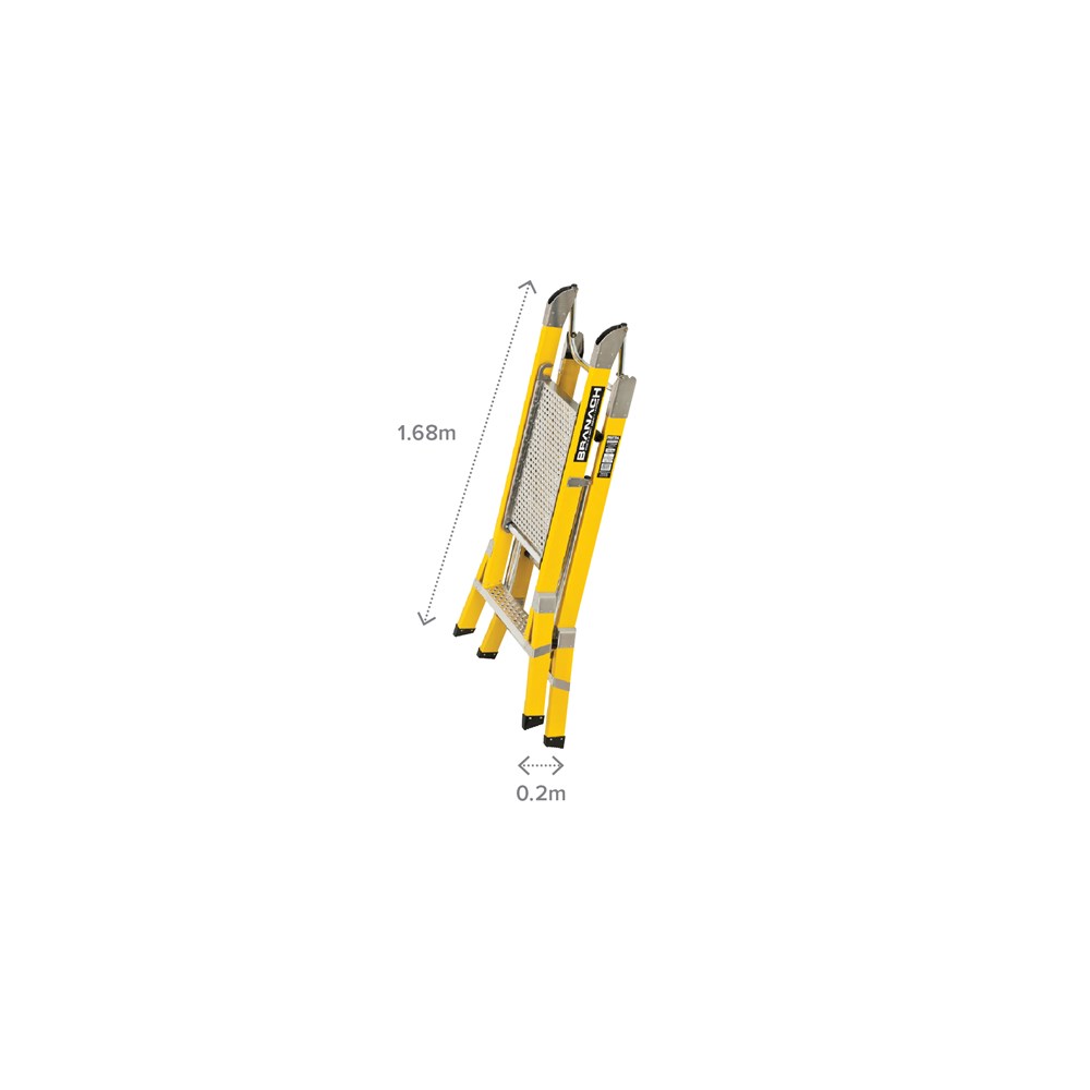 The front safety rail, situated at 900mm above the deck, combined with the fiberglass construction, isolates workers from the ground, making the product suitable for electrical work