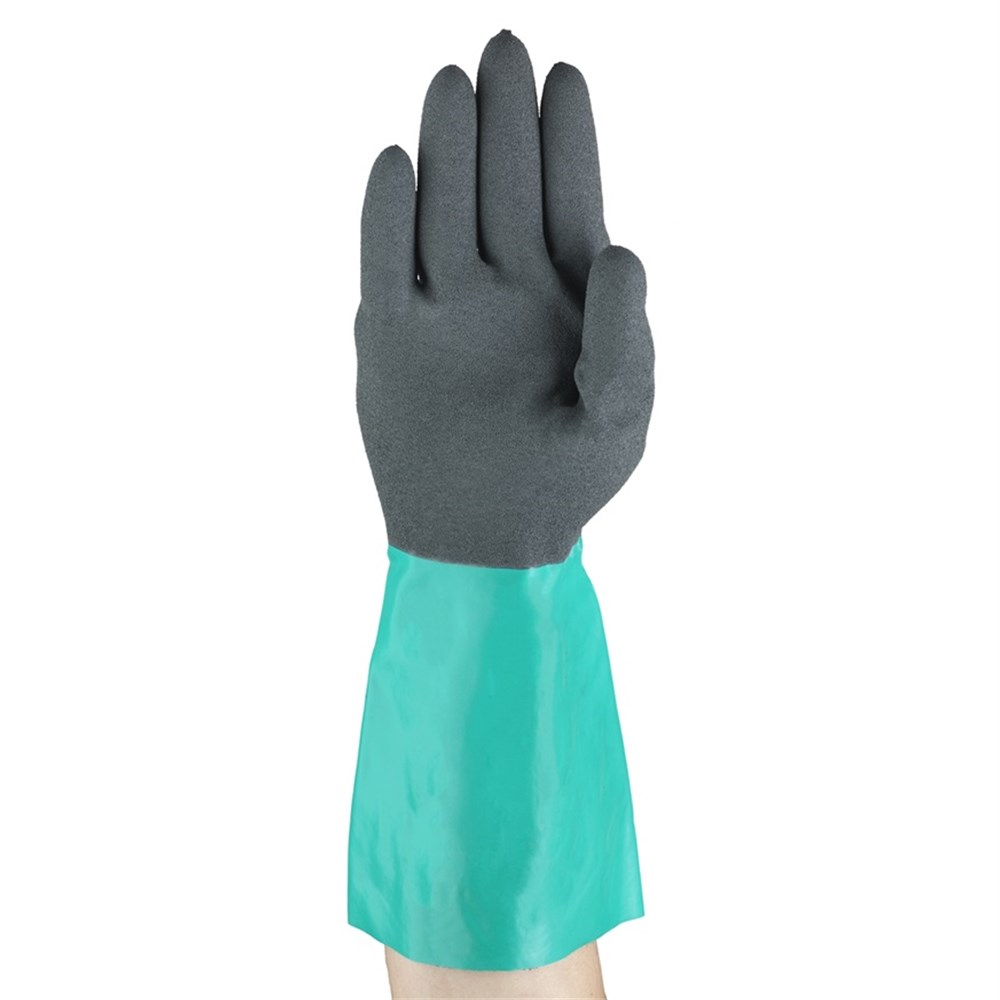 AlphaTec® 58-535B safety gloves boast a bonded construction, with a coating polymer that doesn’t penetrate the liner in manufacture, preventing liquid and chemical leakage